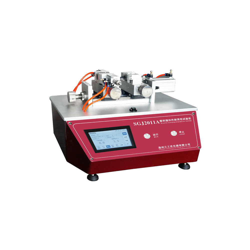 儀器用途:用于塑料插扣反復(fù)耐疲勞性測試,采用觸摸屏顯示,氣動式結(jié)構(gòu),依據(jù)試驗規(guī)范制作,測試方法為將行李箱扣環(huán)固定于機臺上,調(diào)整扣環(huán)行程持續(xù)測試若干次數(shù)后,目視扣環(huán)有無損壞。符合標(biāo)準(zhǔn): Q…